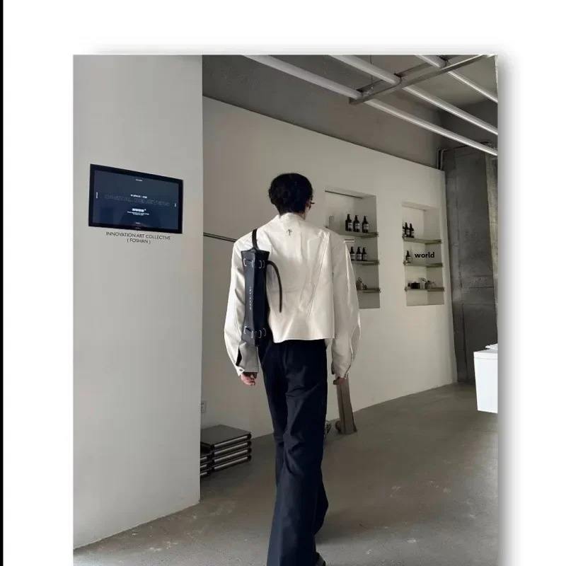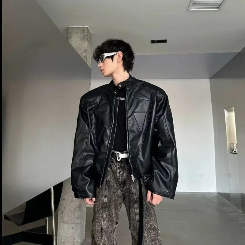 Autumn Vintage Men's Motorcycle Jacket Cross-Border Design with Sensibility Loose-Fit Trendy Leather for Streetwear