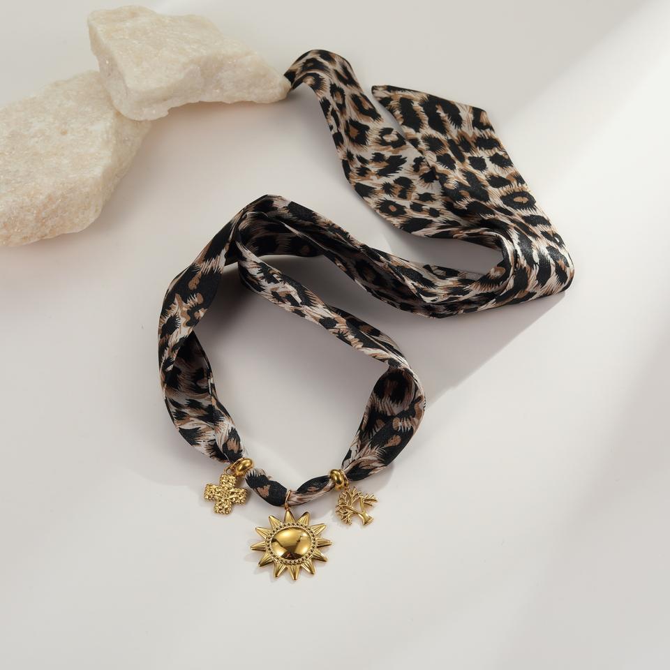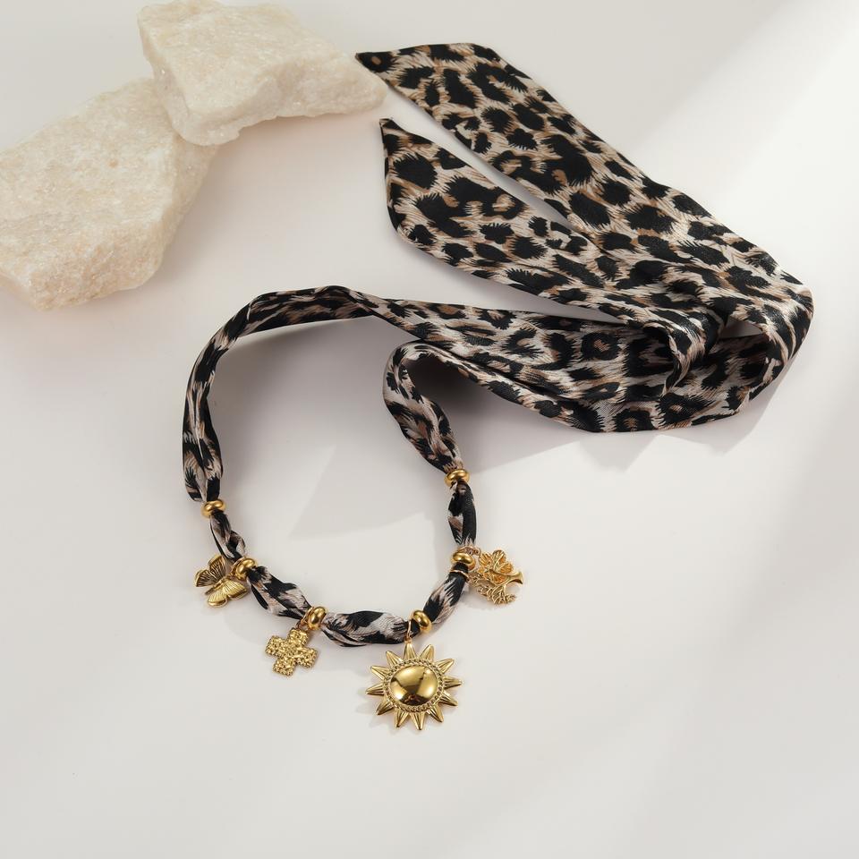 Autumn Winter Fashion Leopard Print Silk Scarf Design Stainless Steel Sun Pendant Necklace and Bracelet Set