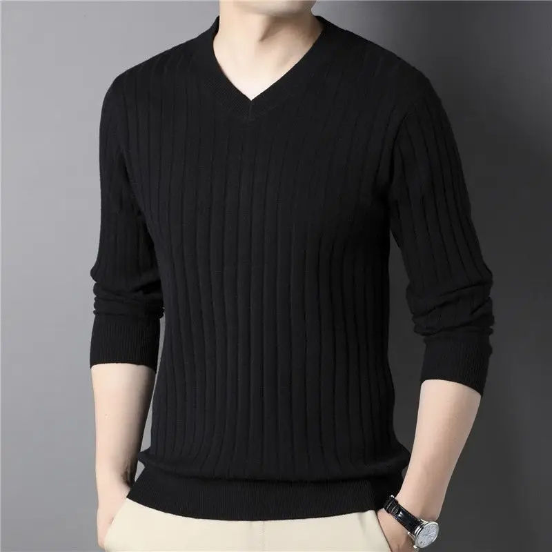 Autumn Winter Fashion V-neck Long Sleeve Pullovers Men Clothing Thread Solid Knitting Casual Sweater