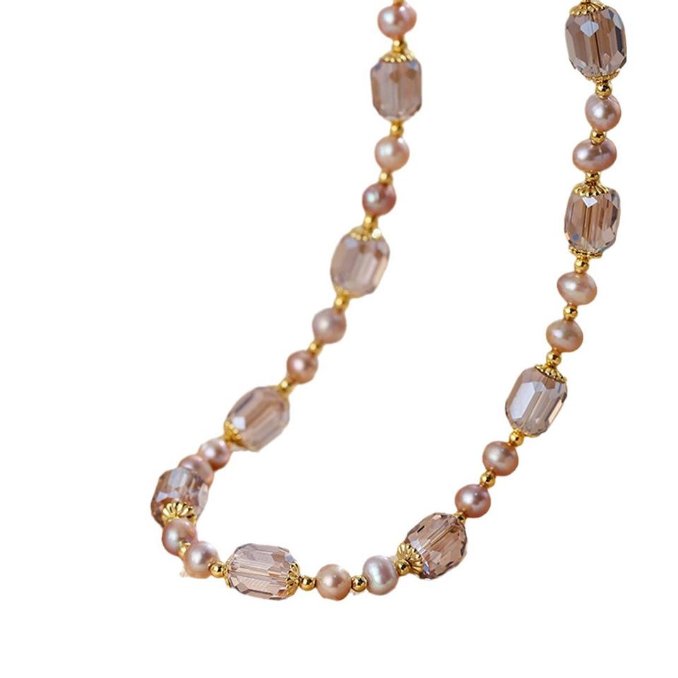 Autumn Winter Female Niche Design Crystal Bead Necklace French Pink Purple Natural Pearl Chain for Sweaters Sweater Chain