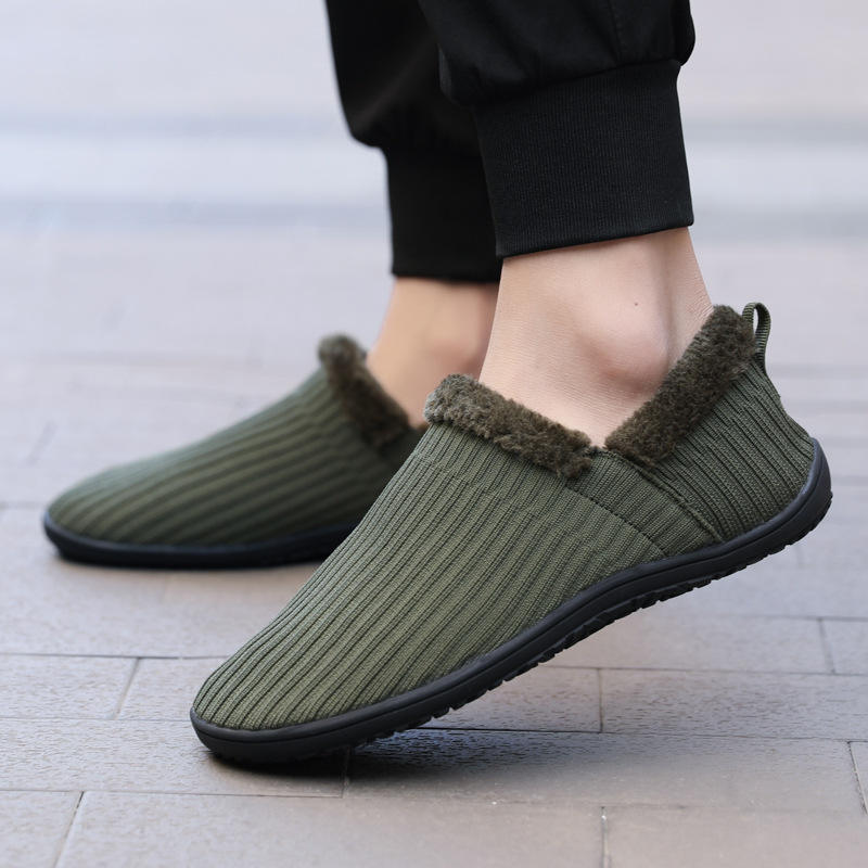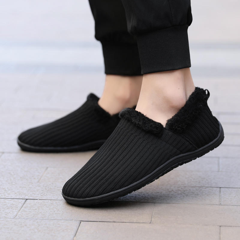Autumn Winter Indoor-Outdoor Home Fluffy Velvety Suede Slip-On Shoes for Men Women Couples Floral Pattern Warm Non-Slip All