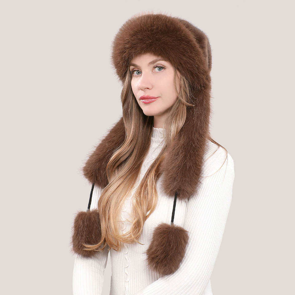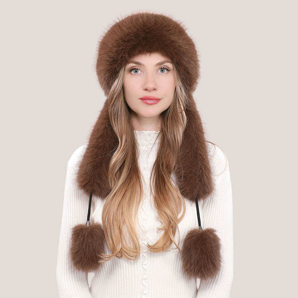 Autumn Winter Ladies Faux Fur Mongolian Hat New Windproof Warm Ear Protection Fake Fox Skiing Hedging Princess Hat for Parties