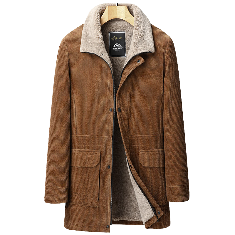 Autumn Winter Man's Mid-Length Overcoat New Granular Velvet Inner Coat Thickened Cotton Corduroy Jacket Single Breasted Closure