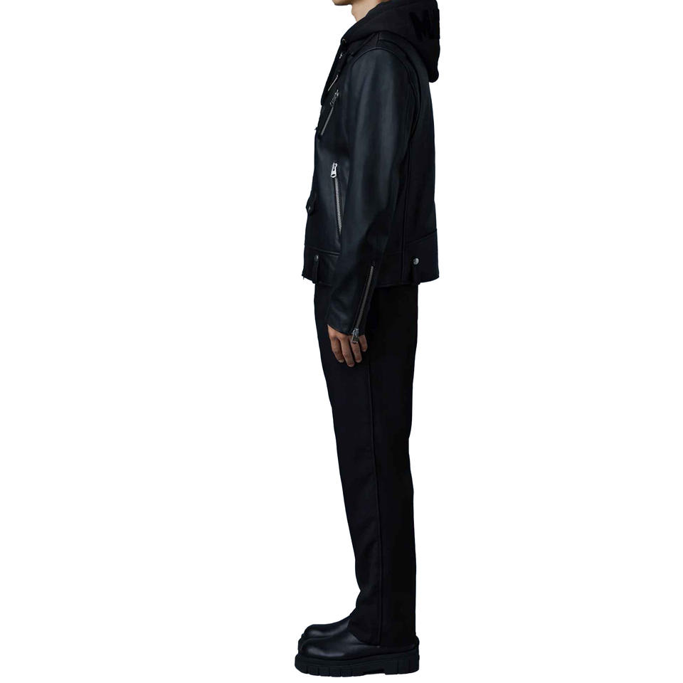 Autumn Winter Men's Casual Zipper Leather Dress Shirt Long Sleeve Lamb Leather Removable Double-face Jersey Center Front Zip