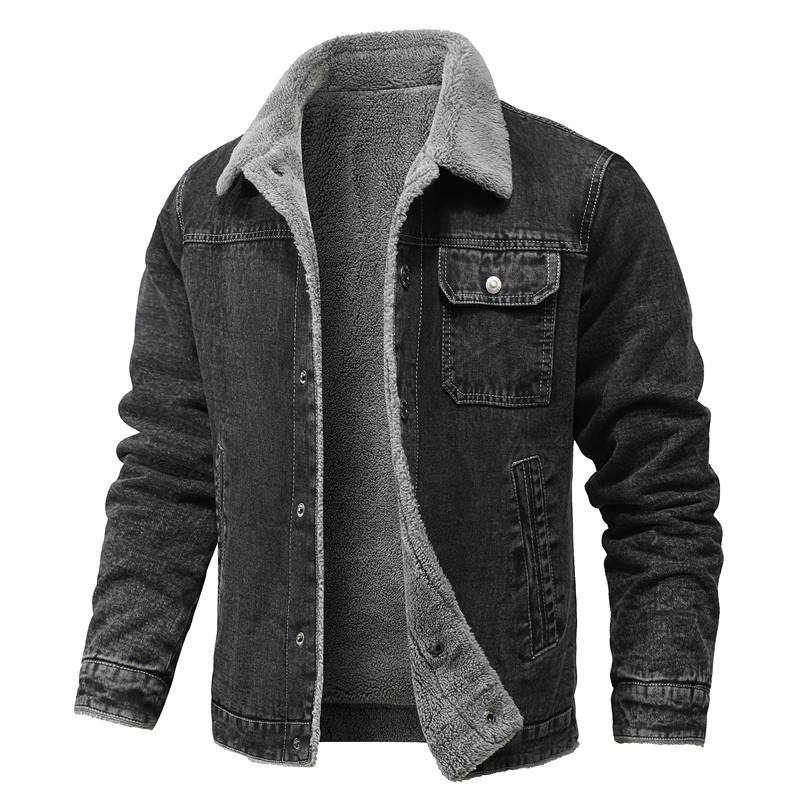 Autumn Winter Men's Cropped Denim Jacket with Zipper Stand Collar Customized Logo-Solid Outerwear with OEM Service and Pockets
