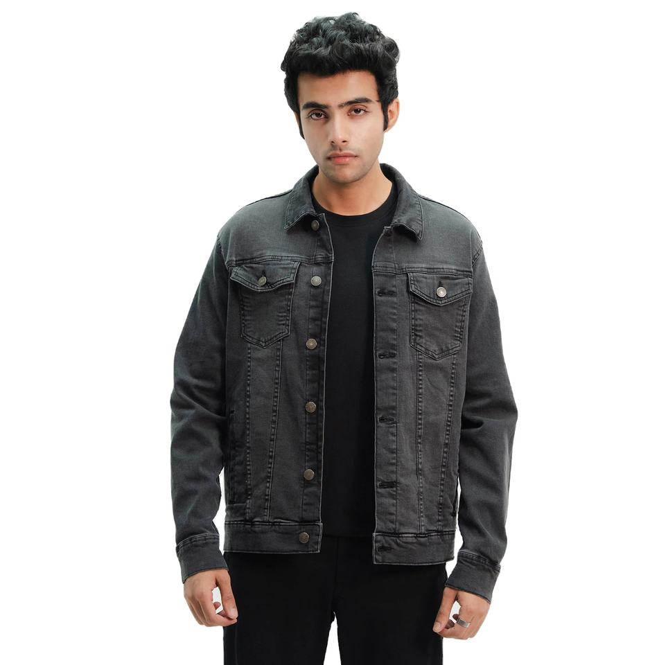 Autumn Winter Men's Cropped Denim Jacket with Zipper Stand Collar Customized Logo-Solid Outerwear with OEM Service and Pockets
