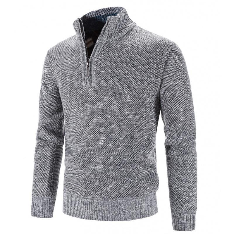 Autumn Winter Men's Knitted Pullover Sweatshirt Solid Color Long Sleeve Turtleneck Zipper Neck Crew Collar Outerwear Pattern
