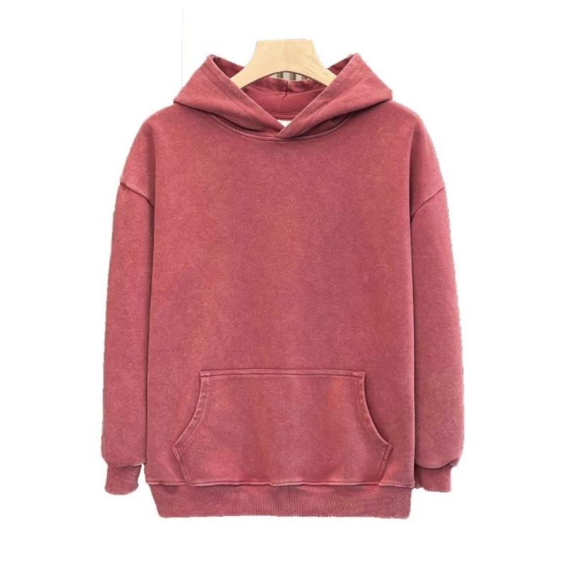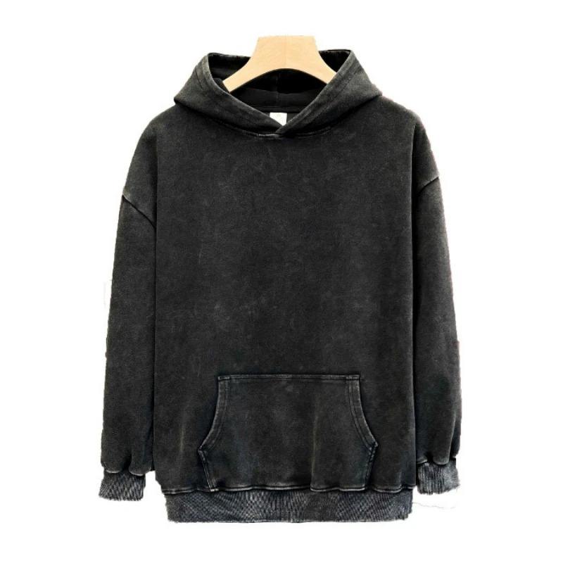 Autumn Winter Men's Retro Fashion Hoodie 100% Cotton High Quality Knitted Washed Technique Casual Large Size New Couple Solid