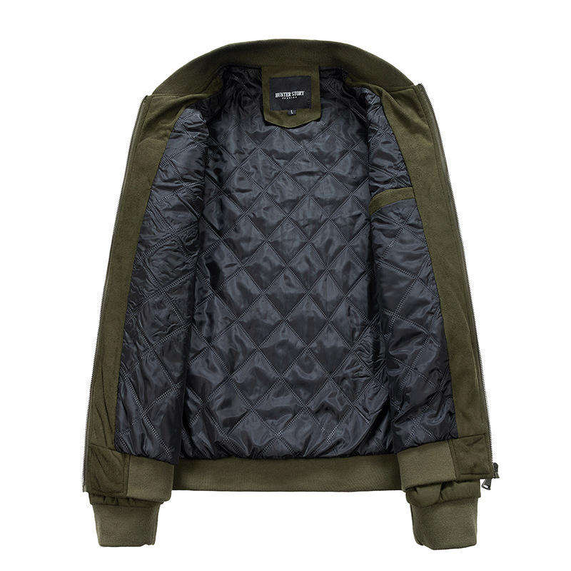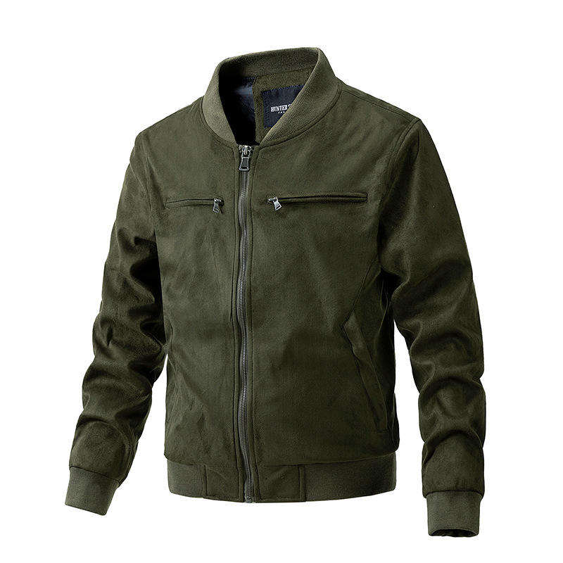 Autumn Winter Men's Suede Jacket | Stand-Up Collar Casual Coat | Double Zipper Pockets Thin Cotton Outerwear