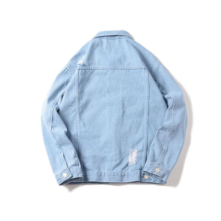 Autumn Winter Men Trendy Punk Casual Denim Jacket 100% Polyester Thin Ripped with Nylon Shell Front Logo Waterproof & Windproof