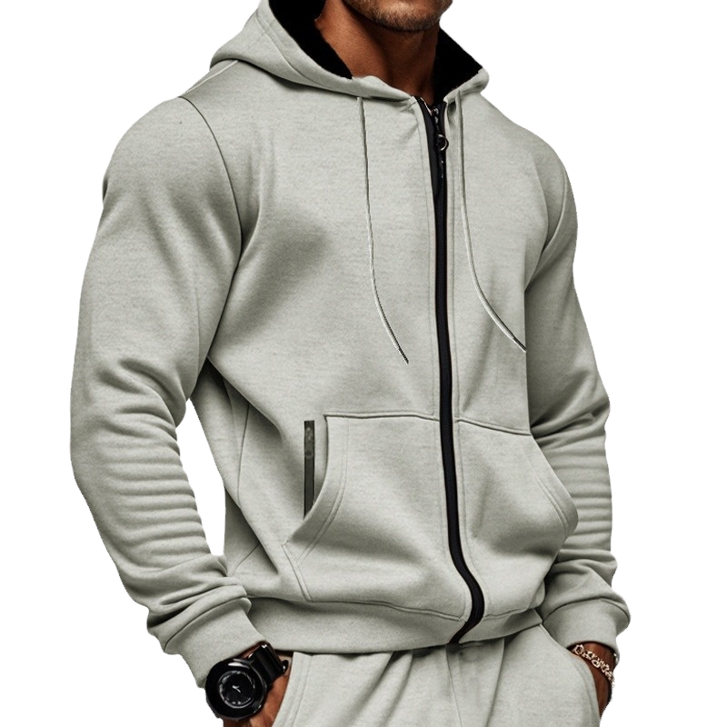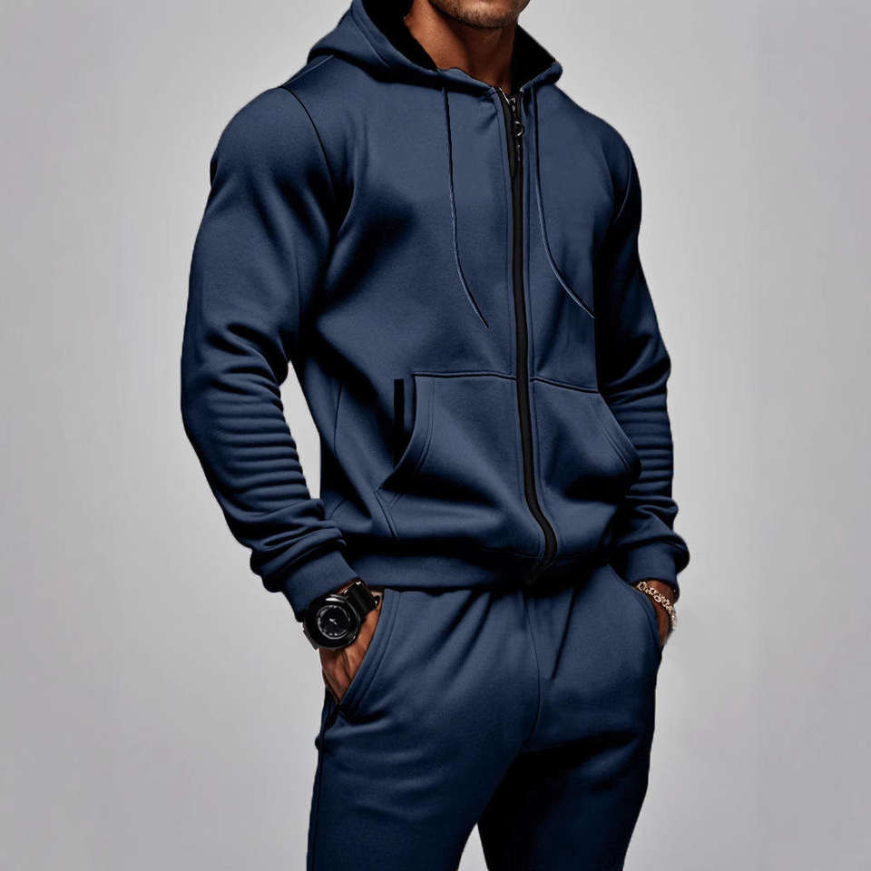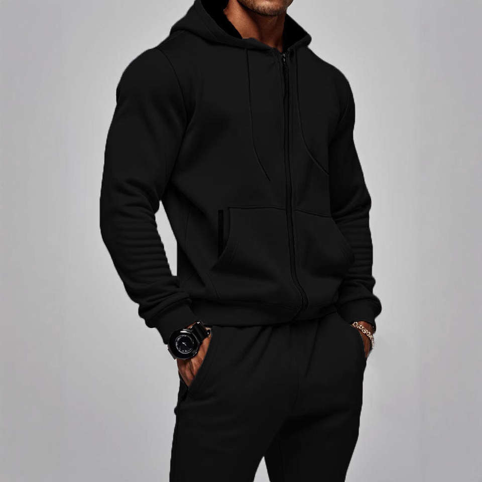 Autumn Winter Mens Casual Sports Jacket Hooded Velvet Waterproof Zipper Warm Breathable Solid Pattern Tracksuit Set