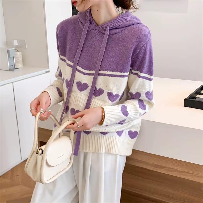 Autumn Winter New Printing Fashion Long Sleeve Sweater Women High Street Casual Hooded Drawstring Elegant All-match Pullovers