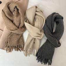 Autumn Winter New Solid Color Wool Square Scarf Women Thickened Warm Double-Sided Two-Color Fringed Shawl Collar Wholesale