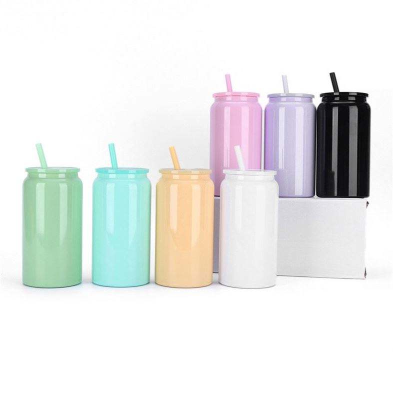 Autumn Winter Solid Color Blank 16Oz Cream Brown Colored Beer Plastic Can Cup With Plastic Lid for Vinyl