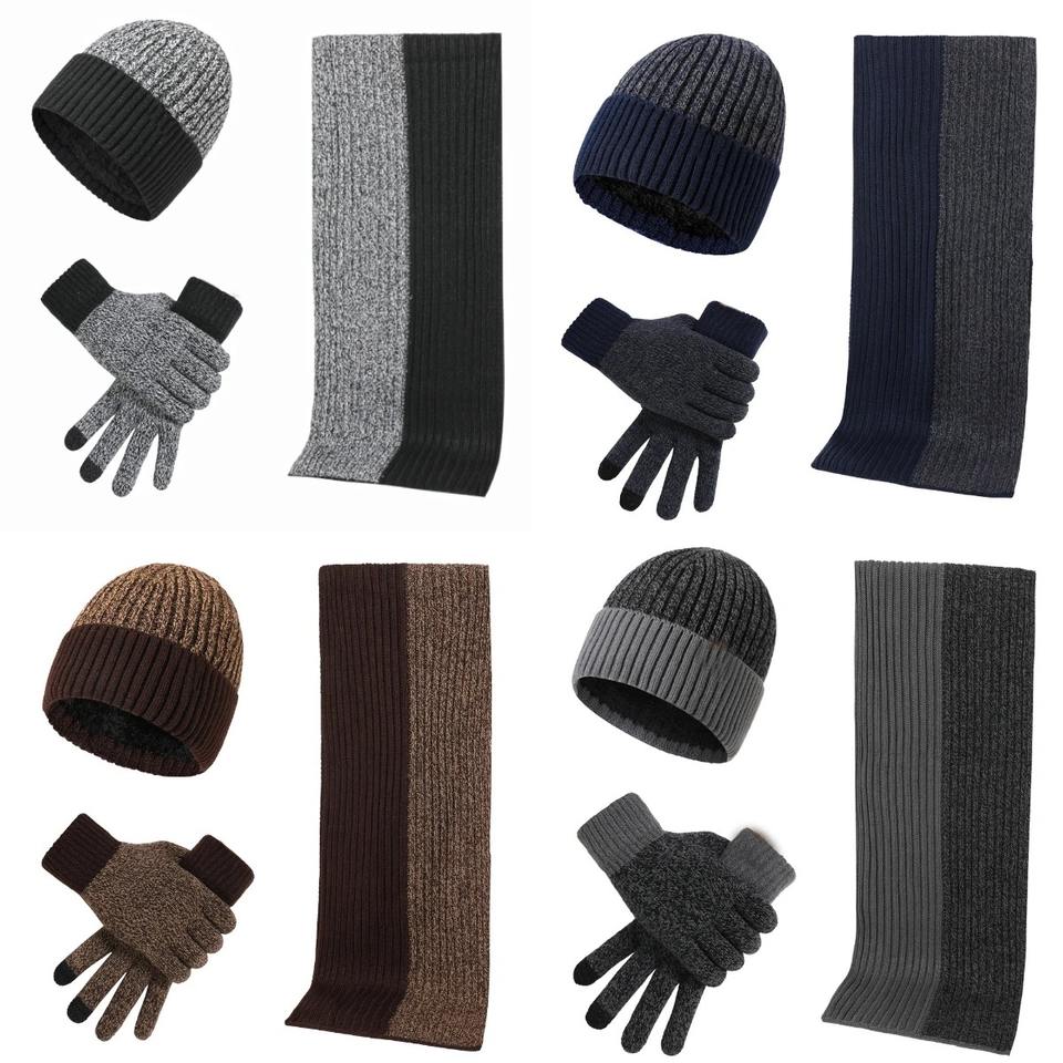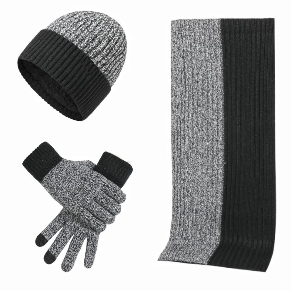 Autumn/Winter Unisex Thick Knitted 100% Cotton Y2K Style Hat Scarf Gloves Set Simple Fashionable Warmth Brimless Cap