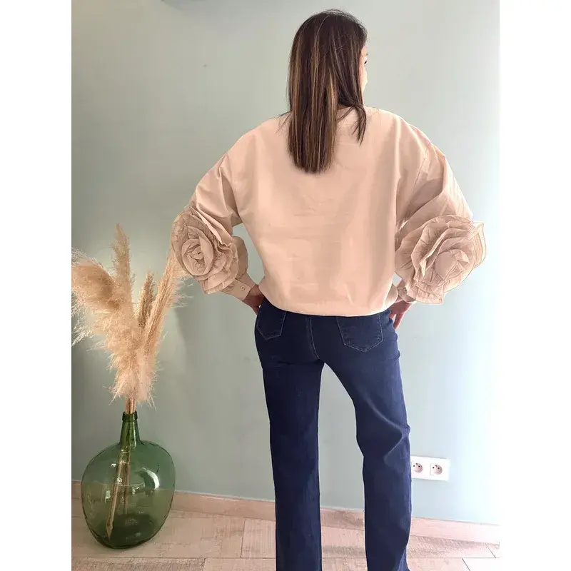 Autumn/Winter Vintage Beige Mohair Cardigan for Women Breathable Thin Sweater Shirt-Style Sleeves Front Logo Beautiful Flowers