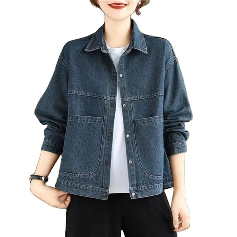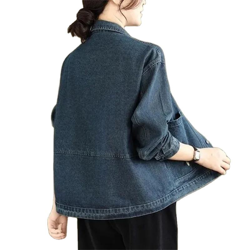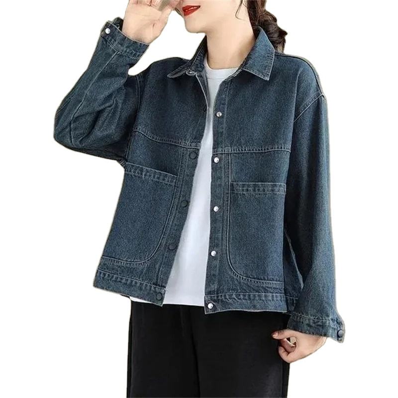 Autumn Winter Women's New Denim Jacket Fashion Grinding Edge Broken Hole Hollow Long Sleeve Single Breasted Casual Collar Top