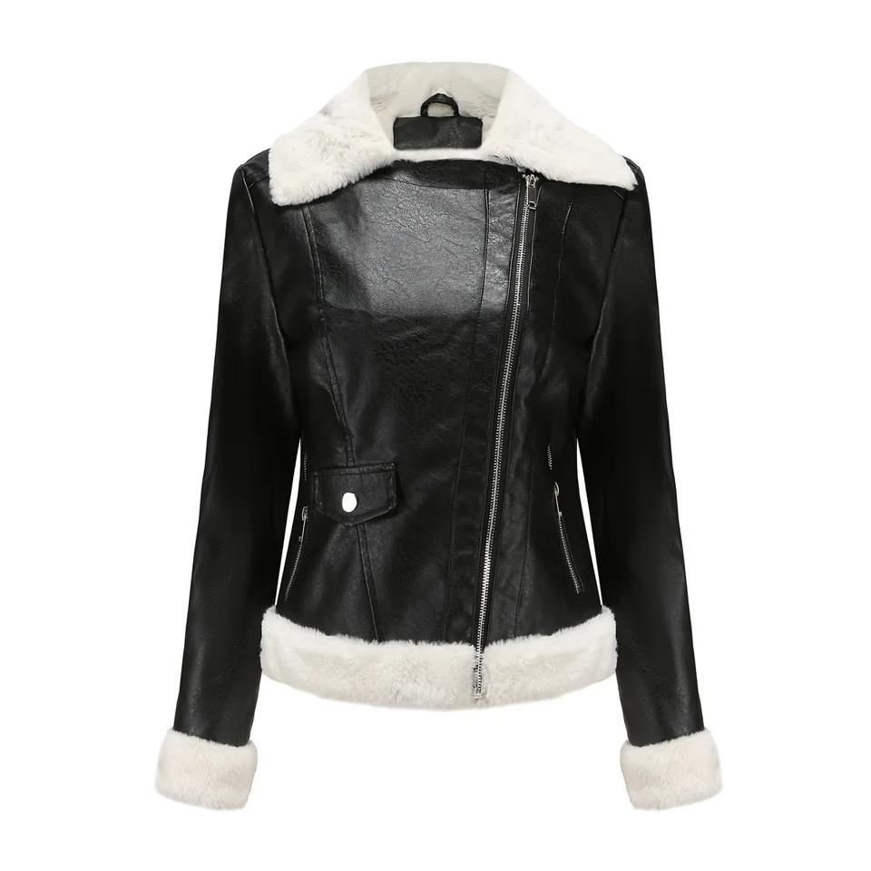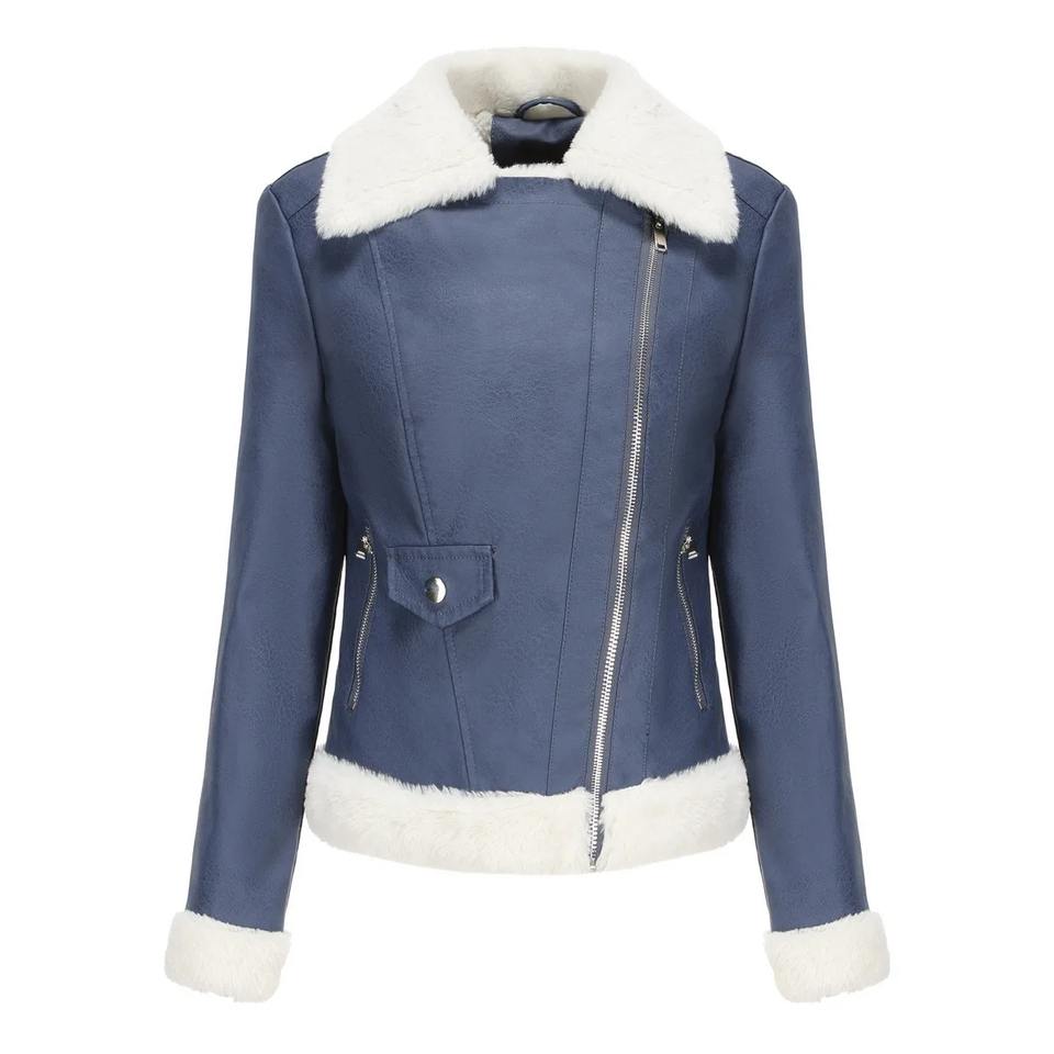 Autumn Winter Women's Plus Velvet Leather Jacket Female Woolen Lapel Thicken Coats Women's Commuter Casual Jacket