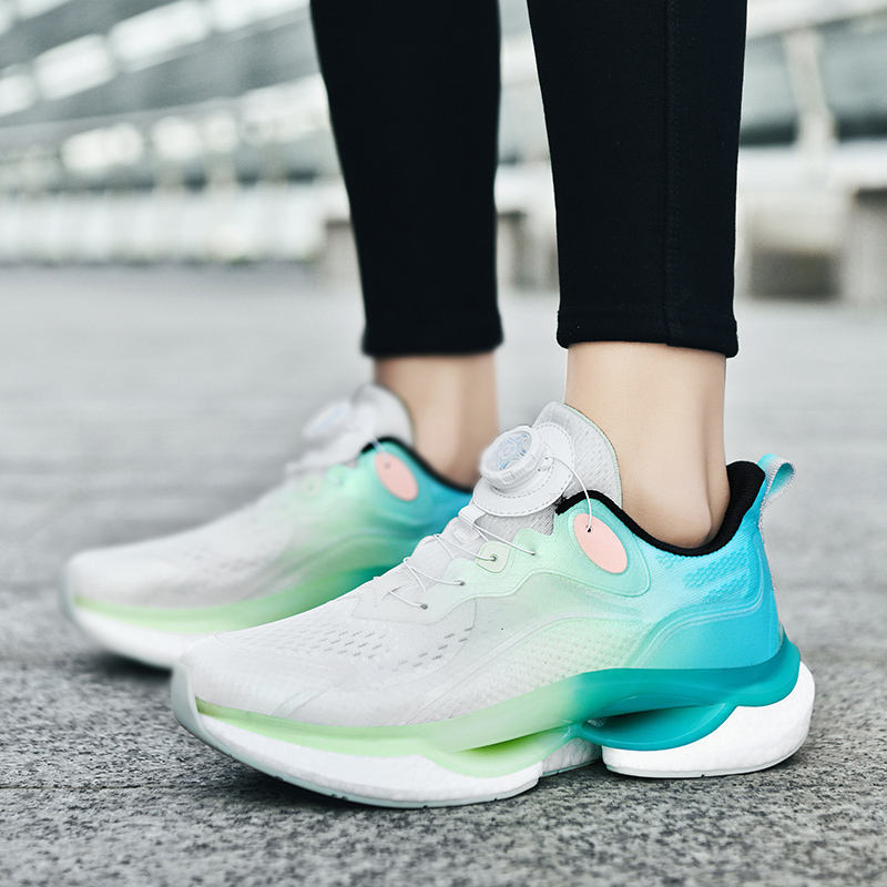 Autumn Winter Women's Stylish Glow-in-the-Dark Low Top Night Running Sneakers Rotating Buckle Lace-Up Mesh Walking Shoes for
