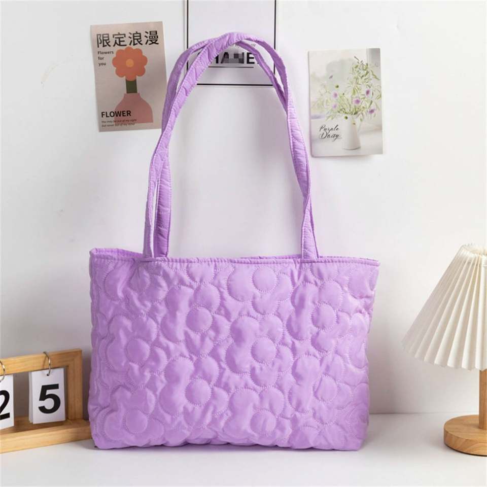 Autumn Winter Women's Tote Bag with Large Capacity Single Shoulder Quilted Flowers Portable Shopping Bag in Candy Colored Jute