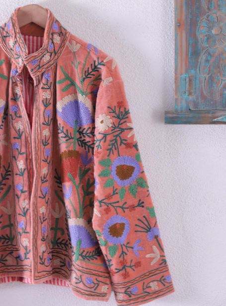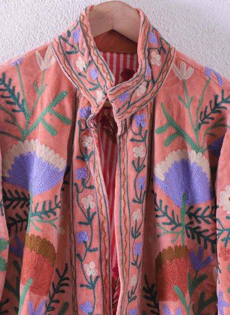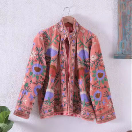 Autumn Women's Embroidery Suzani Jute Fabric Jacket Handmade Khadi Multi Embroidered Coat with Short lining Best Price All Time