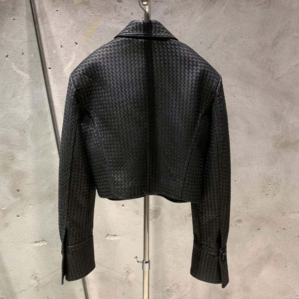 Autumn Women's Knitted Genuine Sheepskin Leather Jacket Stand Collar Silk Lining Black Breathable Shirt Jacket Sashes Decoration