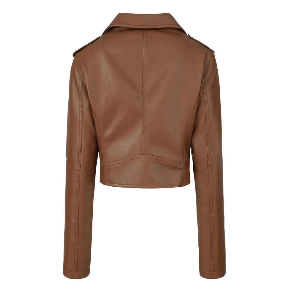 Autumn 2025 Women's New Slim-Fitting Genuine Brown Leather Motorcycle Jacket with Short Belt Plain Dyed Imitation Leather