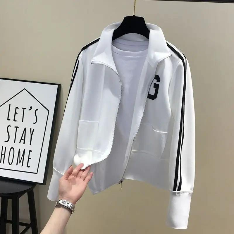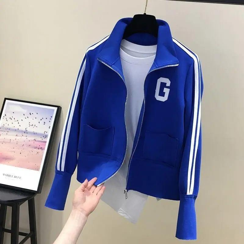 Autumn Women's Sweet Bomber Short Coat Customizable New Letter Stripe Design Made From Sheep Skin Leather and Canvas Fabric