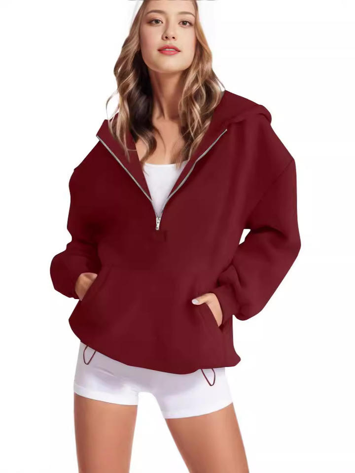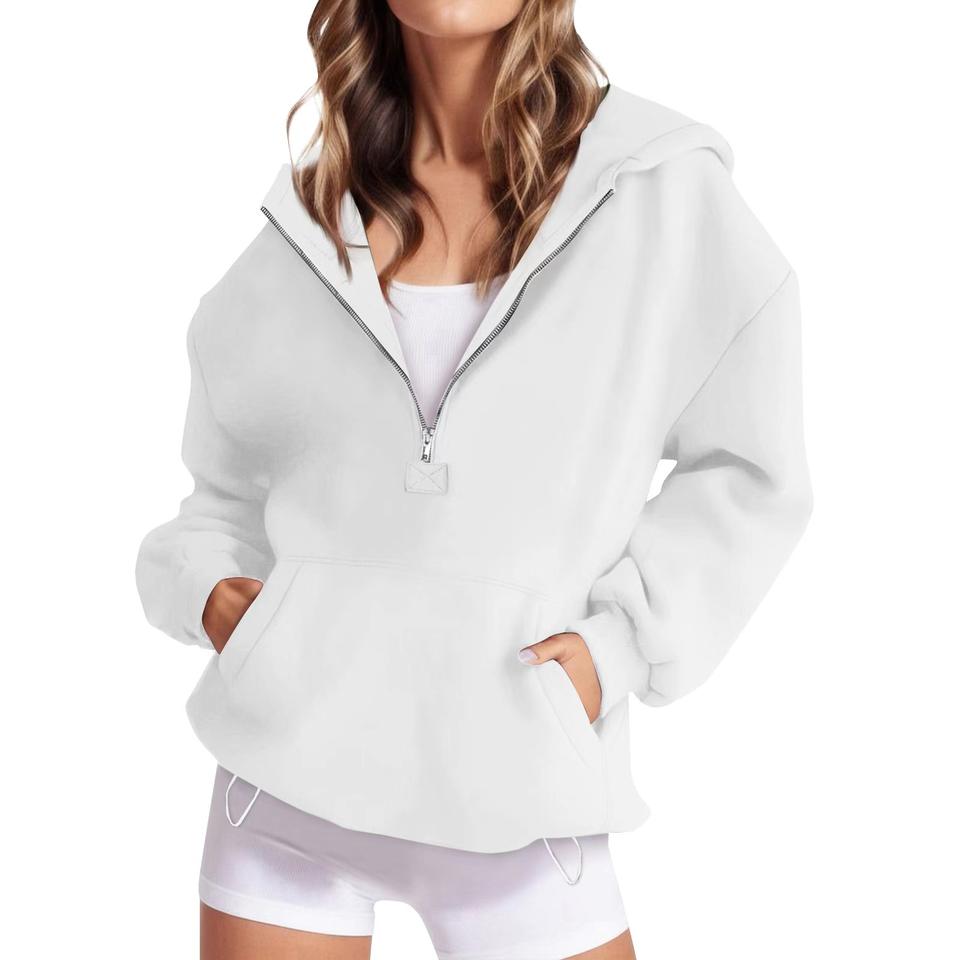 Autumn Womens Casual Pullover Hoodie Lined Fleece Anti-Pilling Solid Color Sweatshirt with Front Logo Print Design