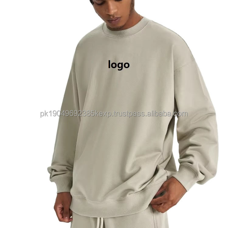 Autumn and winter new 450G wool circle solid color round neck men's hoodie heavy thick American fashion brand loose
