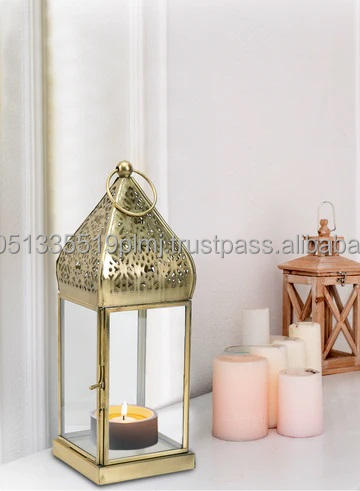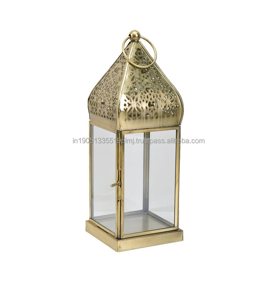 Available High Quality Custom Gold Moroccan Metal Candle Lantern Best Quality Glass Candle Holders Ramadan Decorative Lanterns