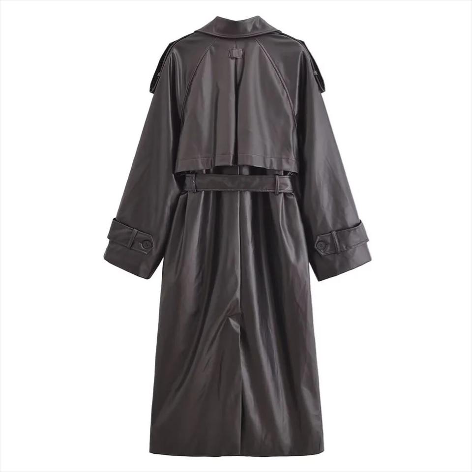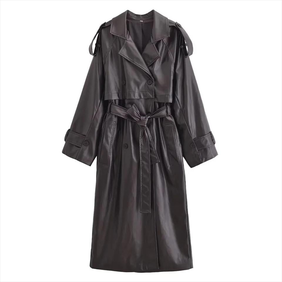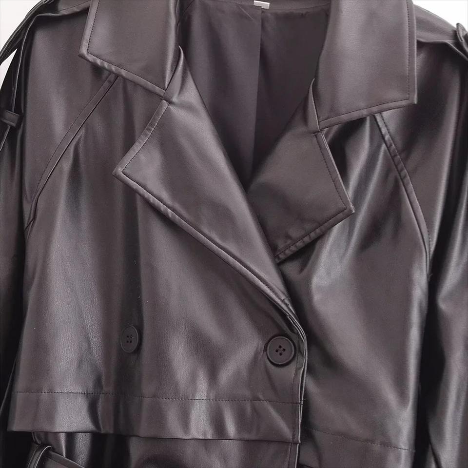 Available in Stock New Women's Clothing Fashionable Temperament Slim Fit Versatile Belt Decoration Faux Leather Trench Coat