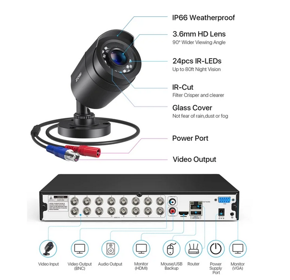 Available in Stock 16 Channel Security Camera System ZOSI Wired 1080p CCTV System Motion Detection