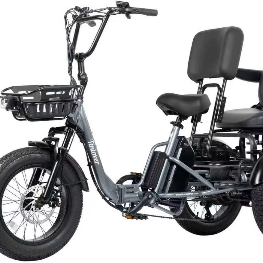 Available in Stock Folding Electric Tricycle for Adults 2 Seater 22MPH 100 Miles 4 Wide Fat Tire Lithium Battery 7-Speed 1200Wh