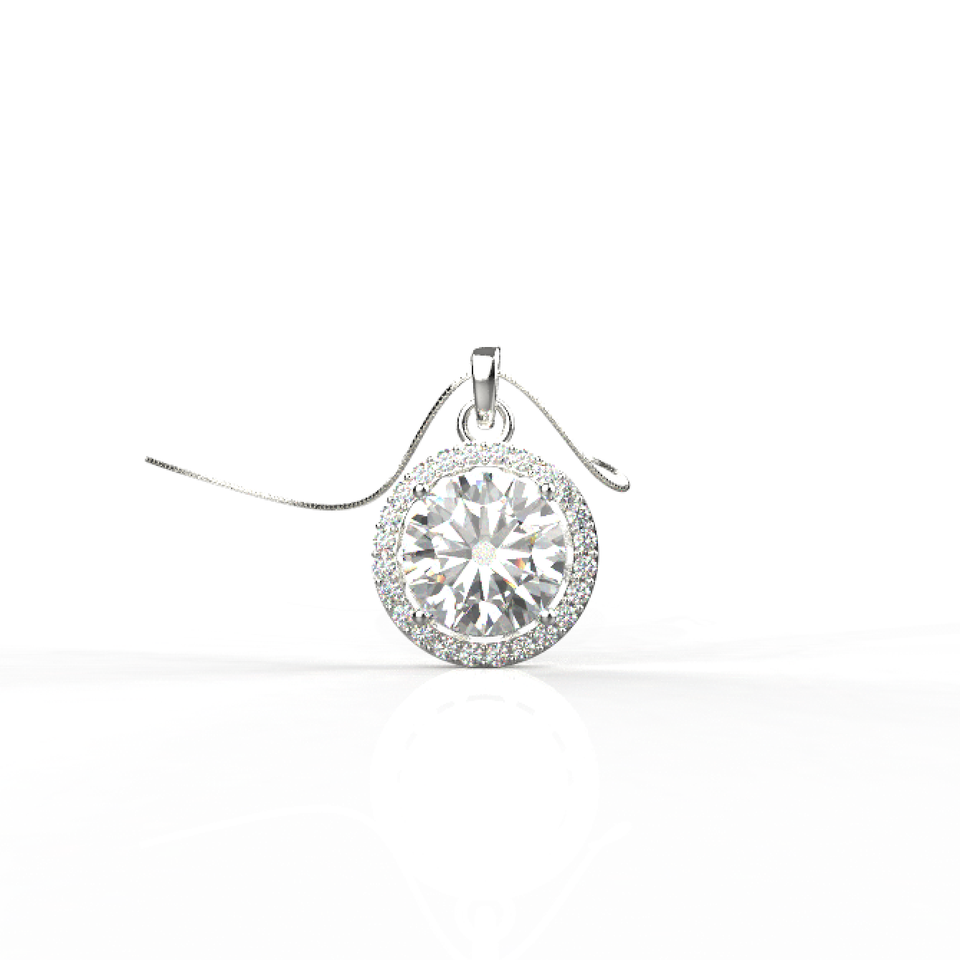 Avarta 2 Carat Solitaire Halo Pendant With Lab Grown Diamond And Chain Sterling Silver With White Gold Polish Fine Pendant