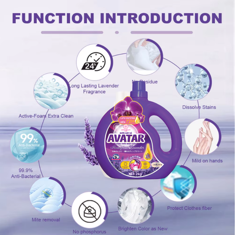 Avatar Long-Lasting Lavender Scented Liquid Laundry Detergent 80% Active Ingredients Fast Stain Odor Remover Fabric Softener