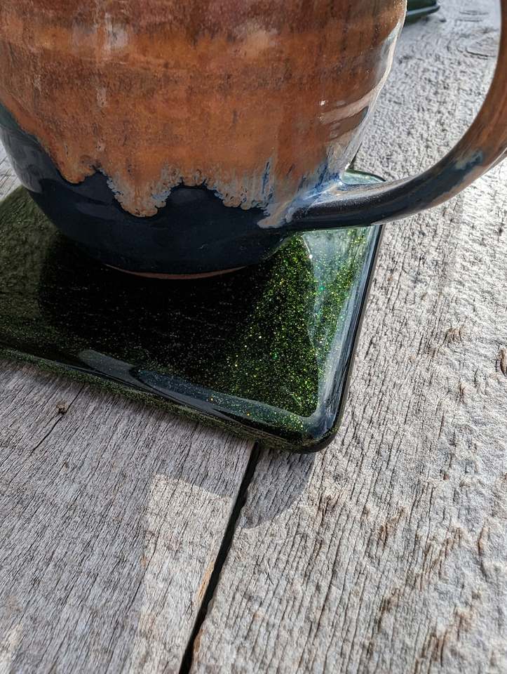 Aventurine Green Fused Glass Coasters Handmade Sparkling Drink Coasters