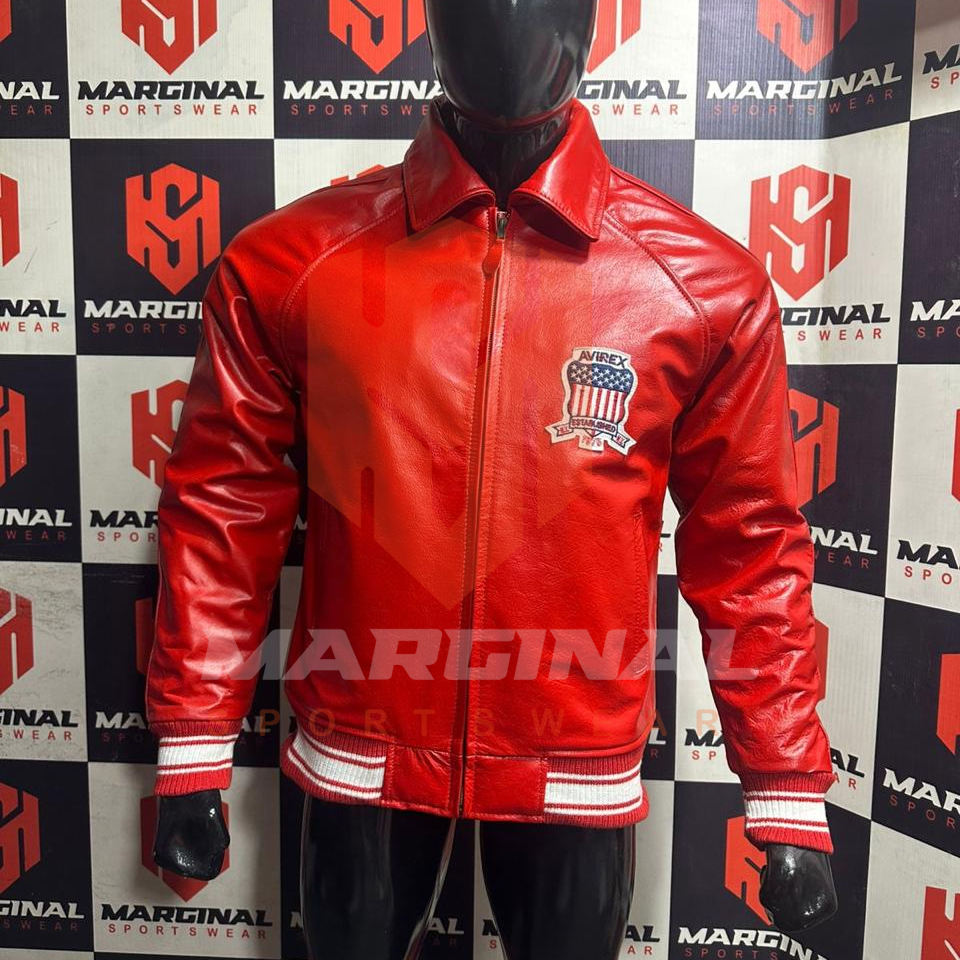 Avirex Men's Premium Red Leather Bomber Jacket Turn-Down Collar Zipper Front Windproof Eco-Friendly Factory Direct