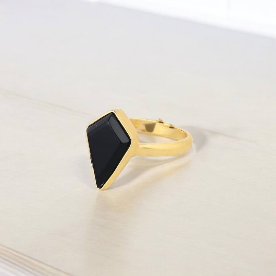 925 Sterling Silver Awesome Black Onyx Ring Handmade Natural Gemstone with Kite Cut Diamond Gold Plated Jewelry Bezel Setting