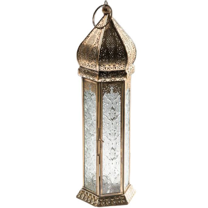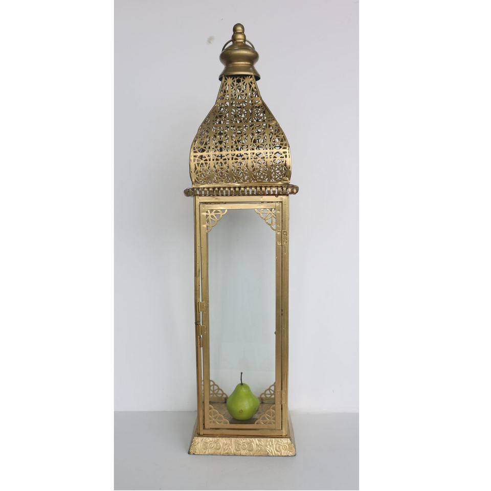 Awesome Tall Size Metal Glass Iron Lantern with Gold Finish Attractive Design for Home or Office Hanging Garden Decor