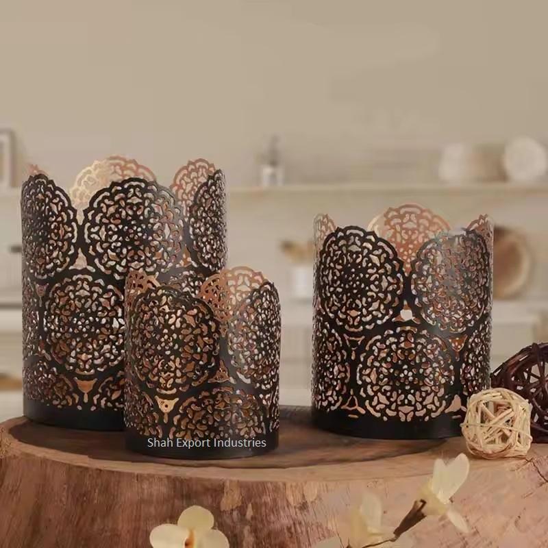 Awesome Design Black Round Votive Candle Holder With Floral Metal Cut Design for Events and Weddings Decorations