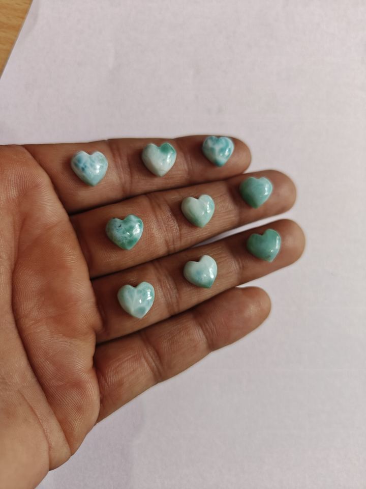 Awesome Handmade Heart Carving Larimar Gemstone 12mm Heart Shape Gemstone Jewelry for Festive Gift Making Good Quality