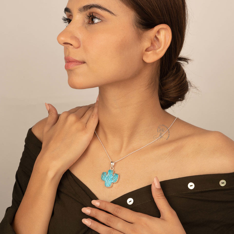 Awesome Latest Unique Design Arizona Turquoise Cactus Carving 925 Sterling Silver Natural Gemstone Pendant Fine Jewelry