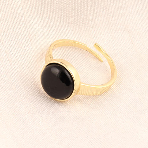 Awesome Natural Round Shape Black Onyx Ring Brass Gold Plated Ring Collet Setting Women's Wear Jewelry Adjustable Gemstone Ring