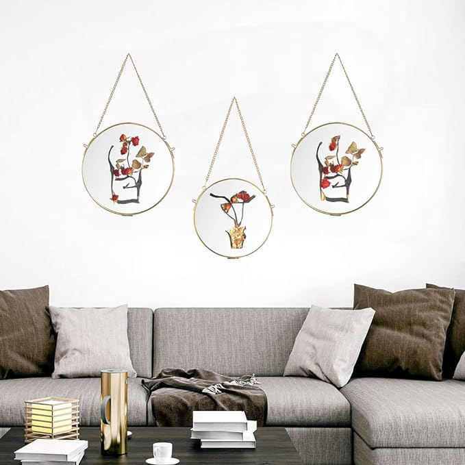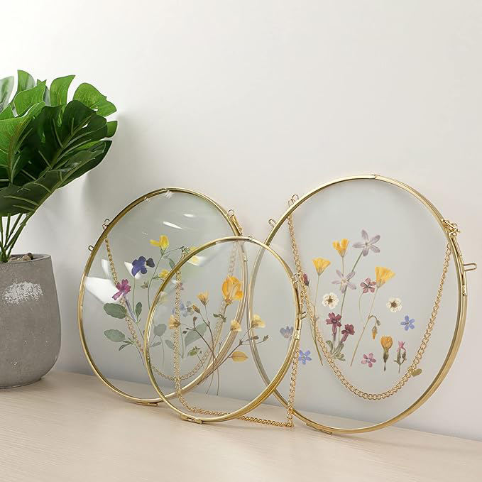 Awesome Quality Exclusive Design Round Photo Frame Clear Glass Metal Border in 3 Pcs Photo Frame Pressed Flower Dreid Art