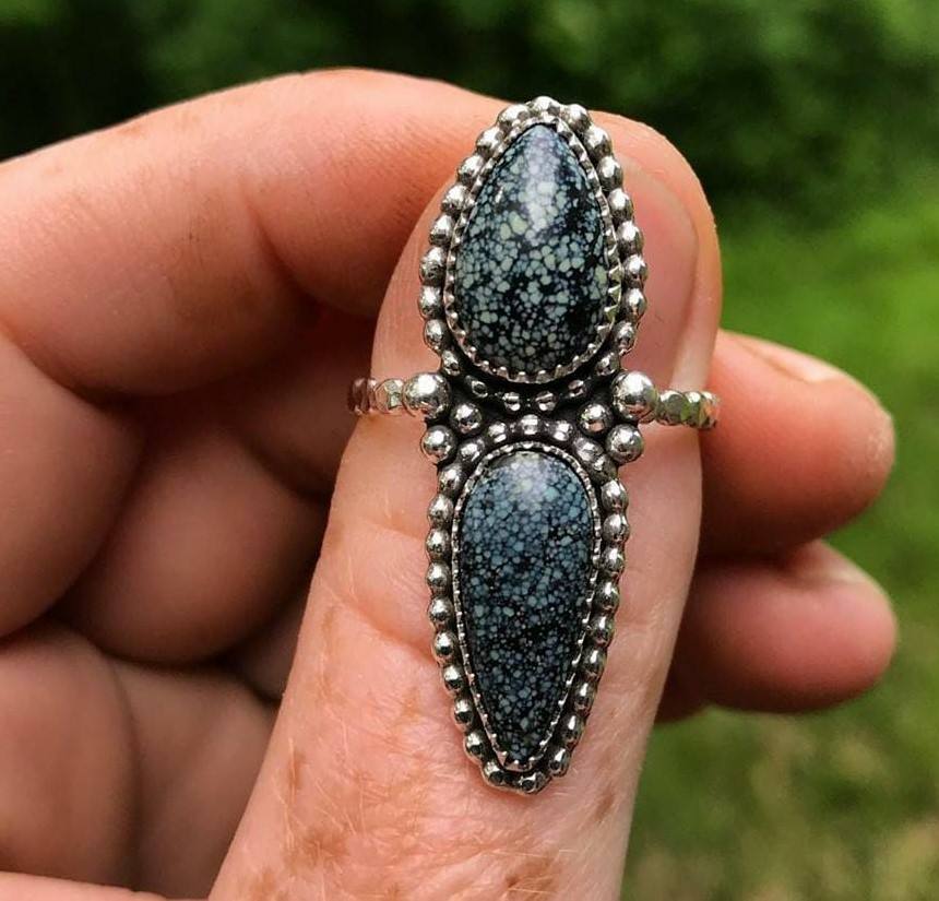 Keyword:Snowflake Obsidian Gemstone Handmade Ring Statement Jewelry
