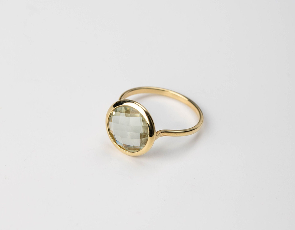 Awesome Staring Silver Gold Plated Green Amethyst Gemstone Ring Round Shape 10mm Prong Set Fashion Jewelry Set For Birthday Gift