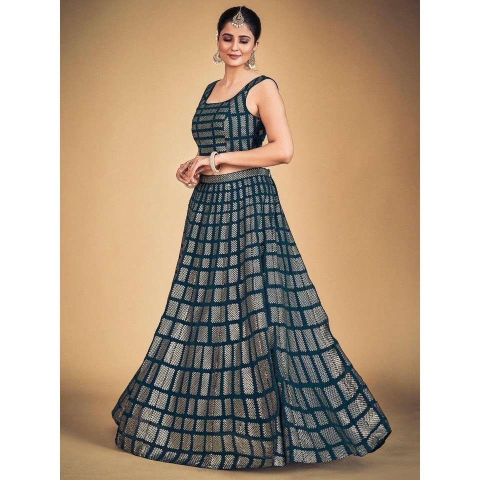 Awesome Teal Blue Sequins Georgette Engagement Lehenga Choli Elegant Wedding Dresses