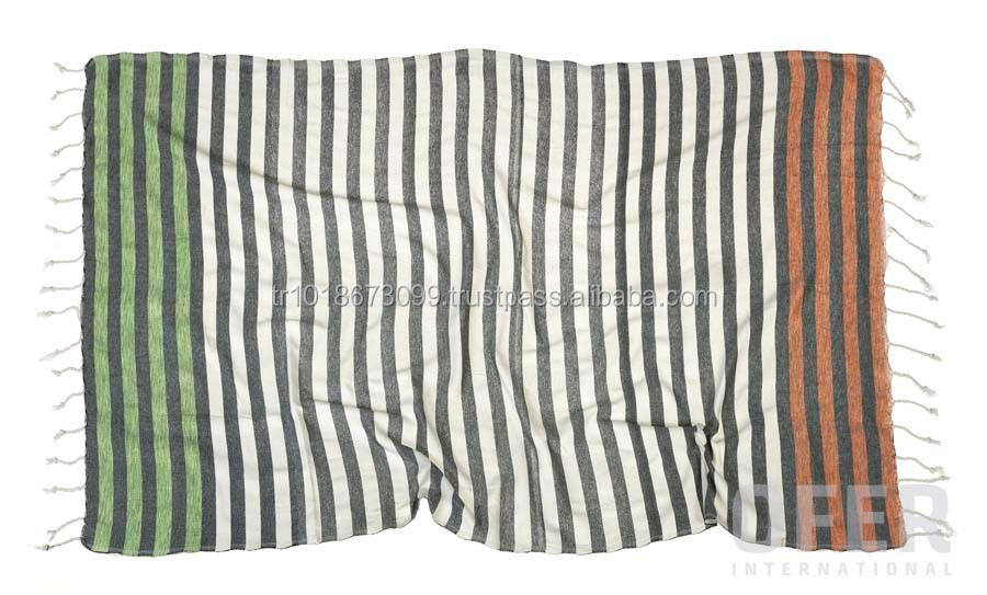 Ayder Peshtemal Turkish Fouta Towels, Pestemal, Hamam Towels Wholesale Bamboo Cotton Blanket - Orange Green Rainbow Collection