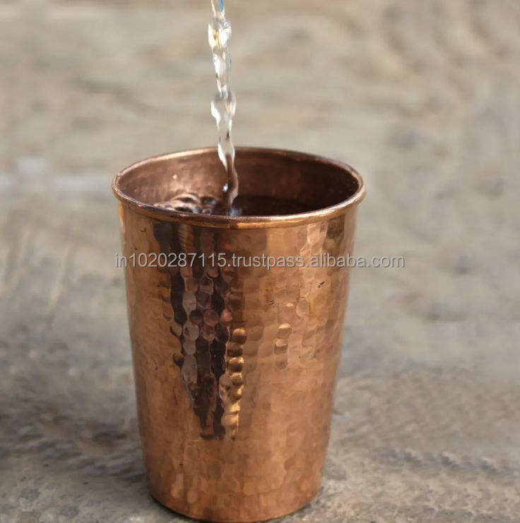 Ayurvedic metal glass made from pure copper with ancient tradition influence for energy balance and detox